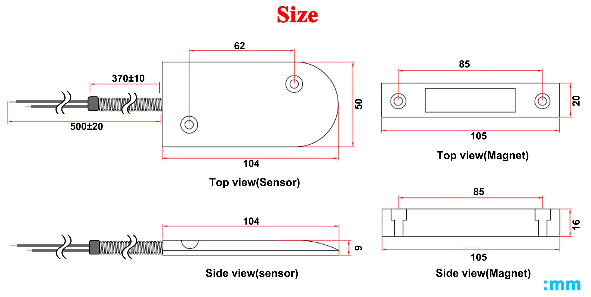 - 磁铁部分:105 *20 * 16mm