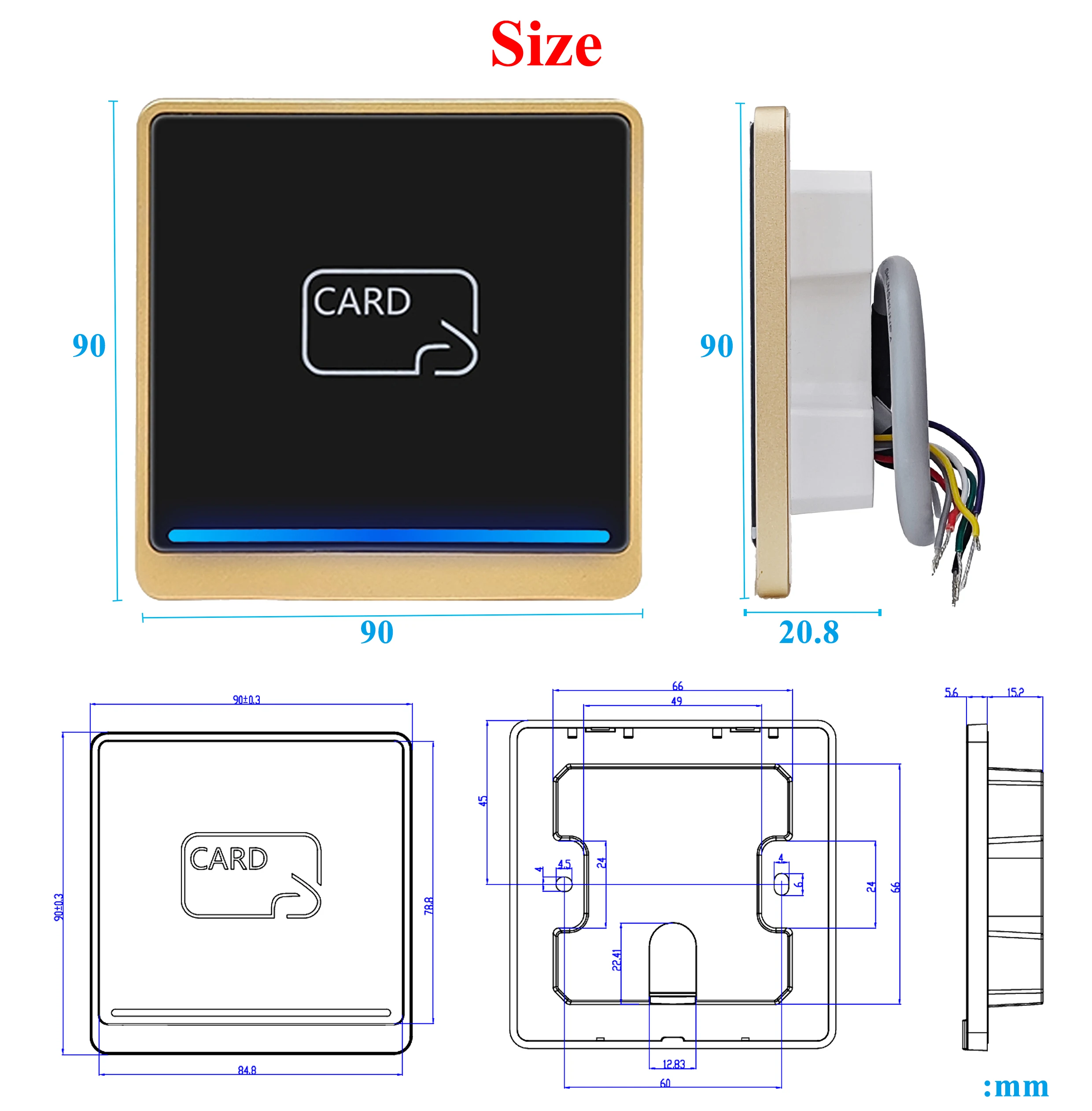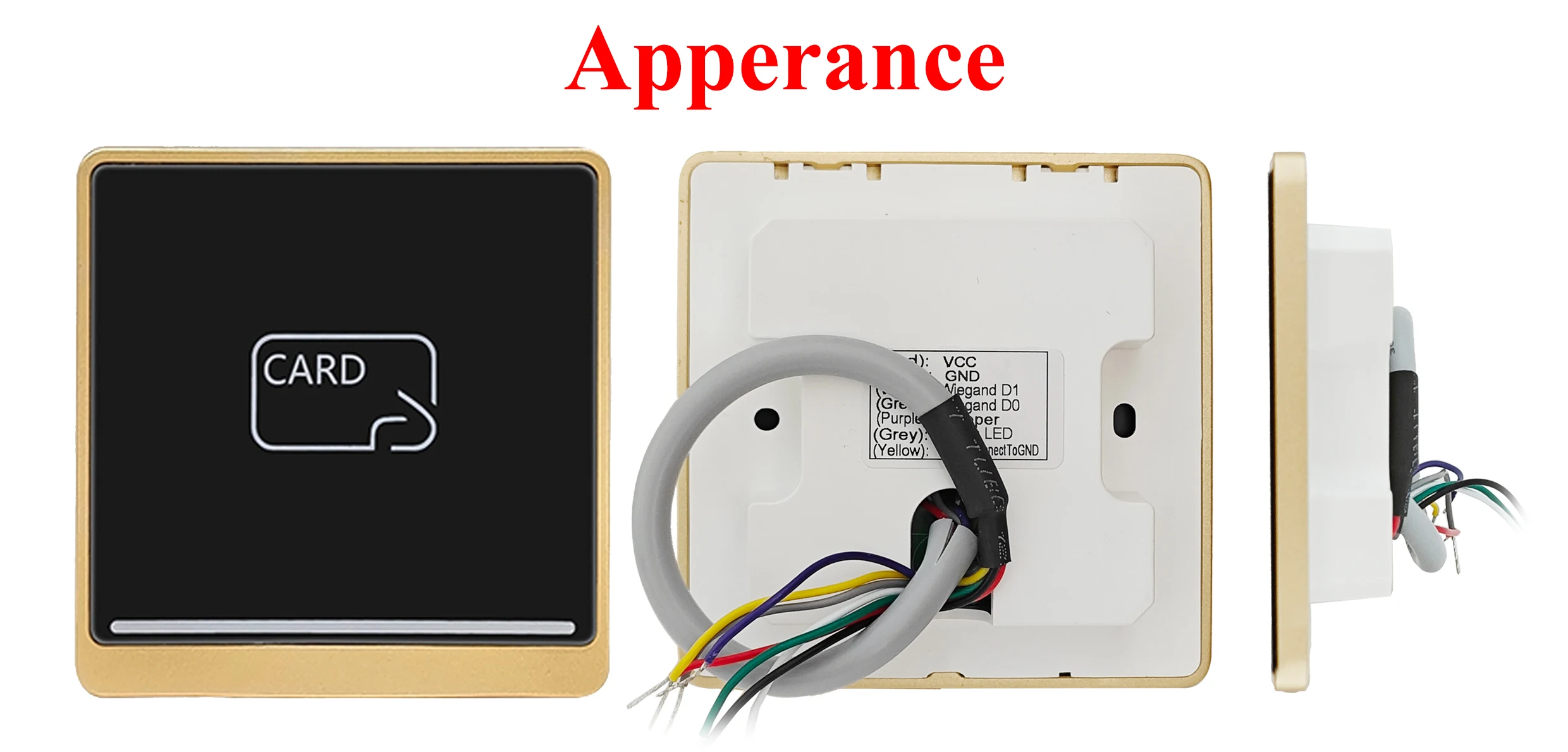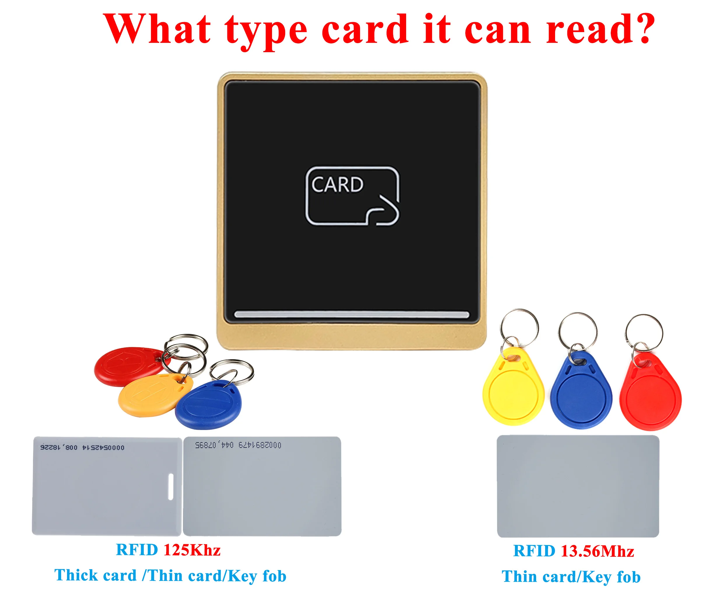 - Card type:ID Card (125Khz)&IC card(13.56MHz)