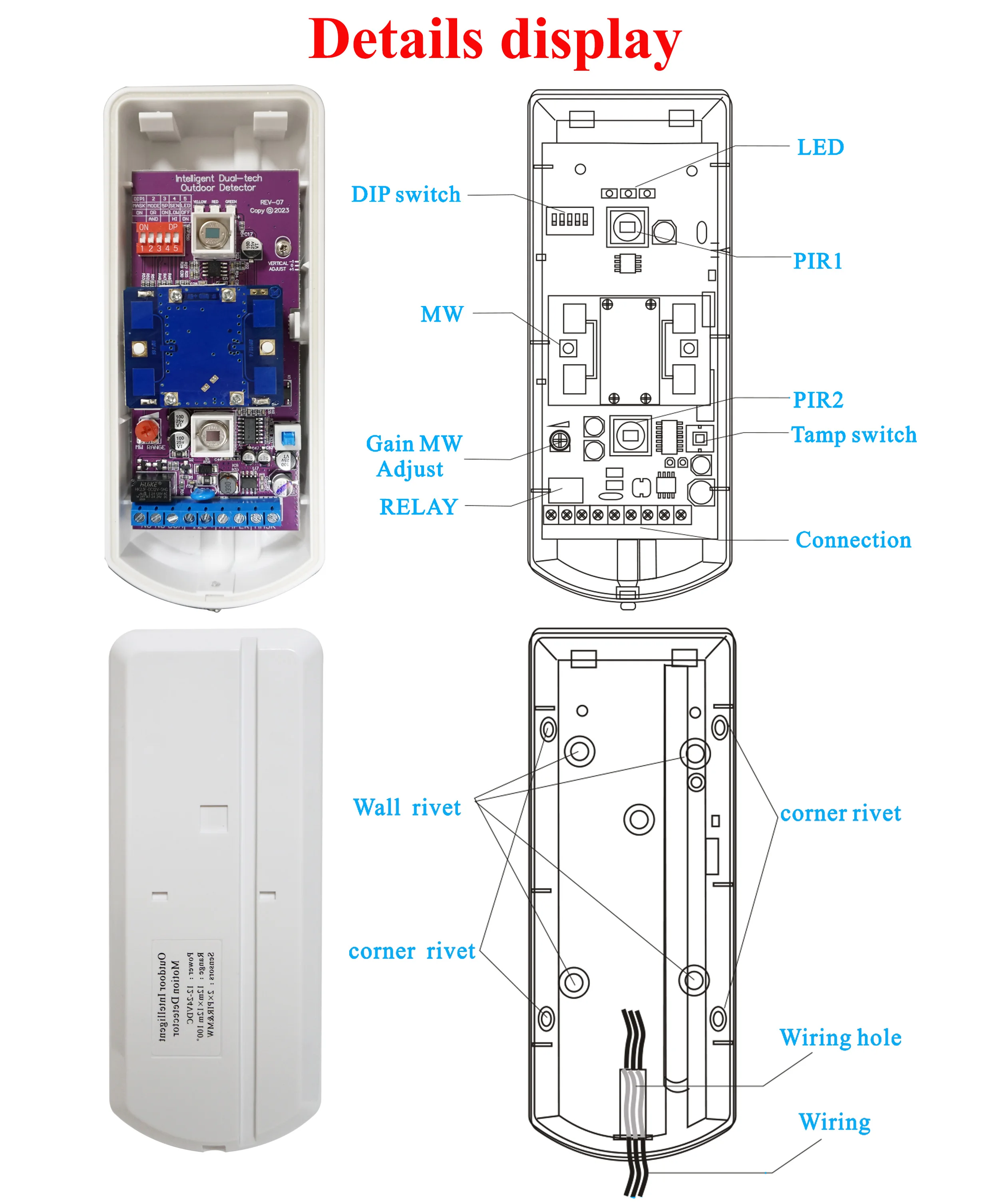 | Tên | Cảm biến chuyển động có dây ngoài trời Pir Vi sóng Miễn dịch cho thú cưng |